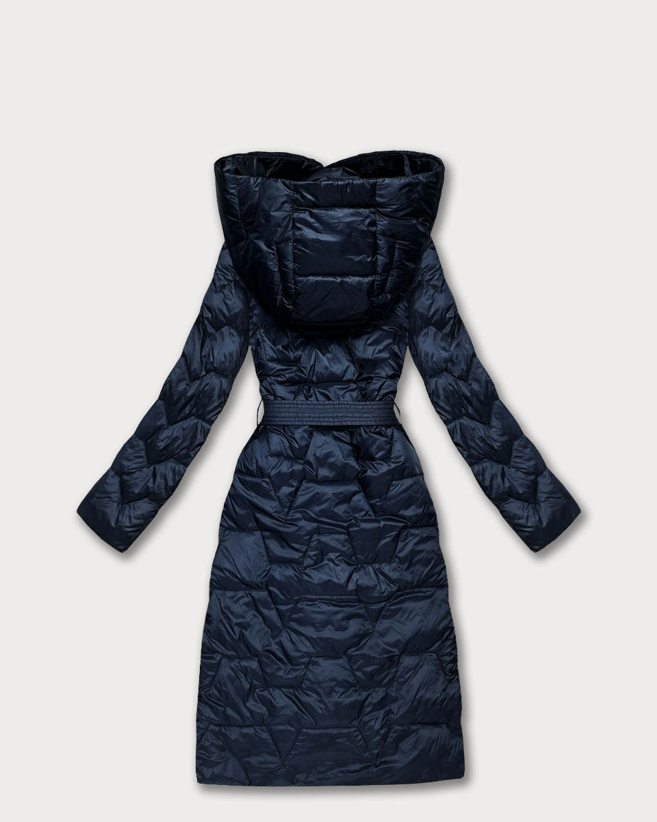 Opinie o Pikowany płaszcz z paskiem Libland granatowy (LD-7806)
