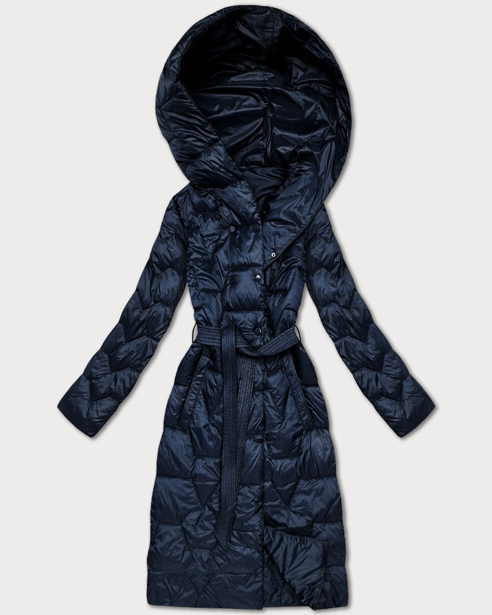 Pikowany płaszcz z paskiem Libland granatowy (LD-7806)