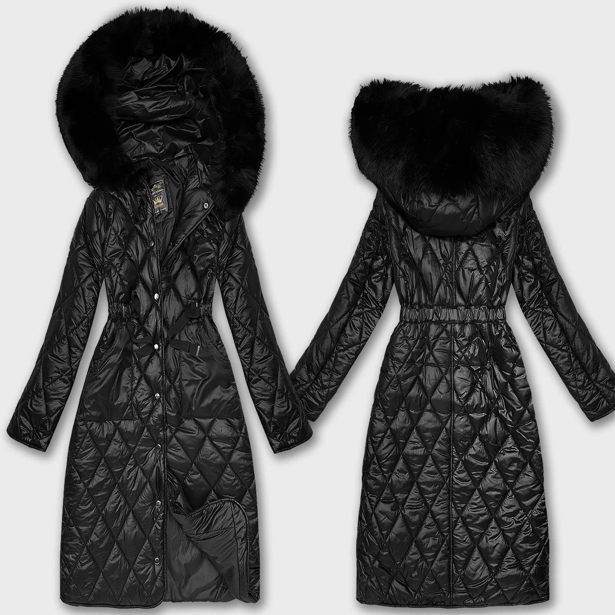 Pikowany płaszcz z kapturem Libland czarny (LD-7768)