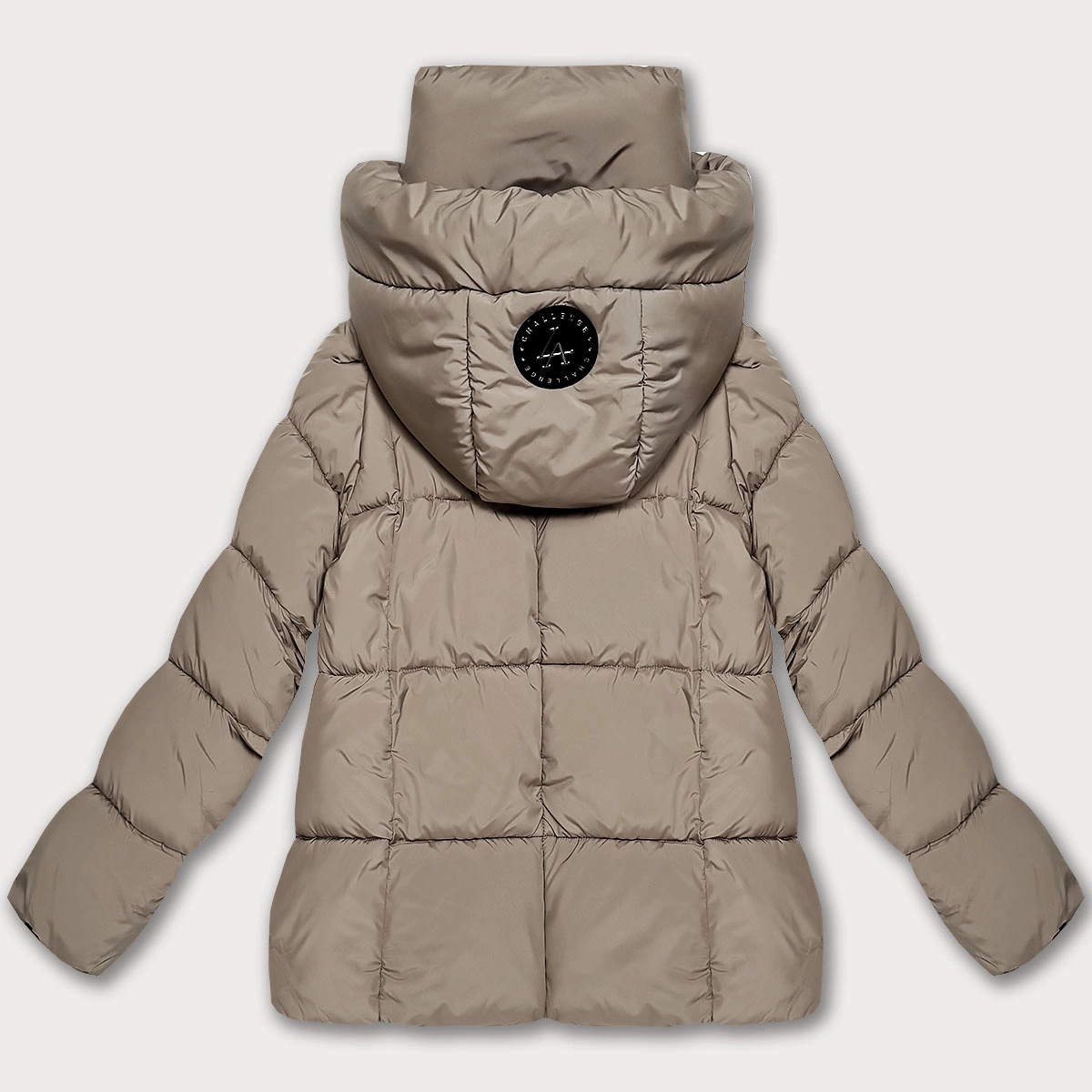 Puchowa luźna kurtka damska z kapturem S'West ciemny beżowy (B8529-12)