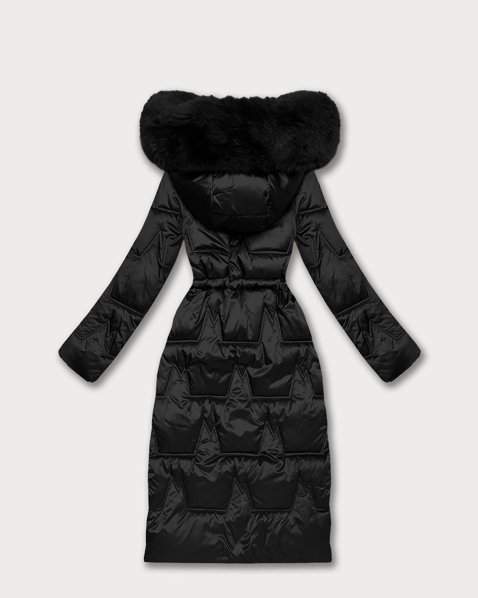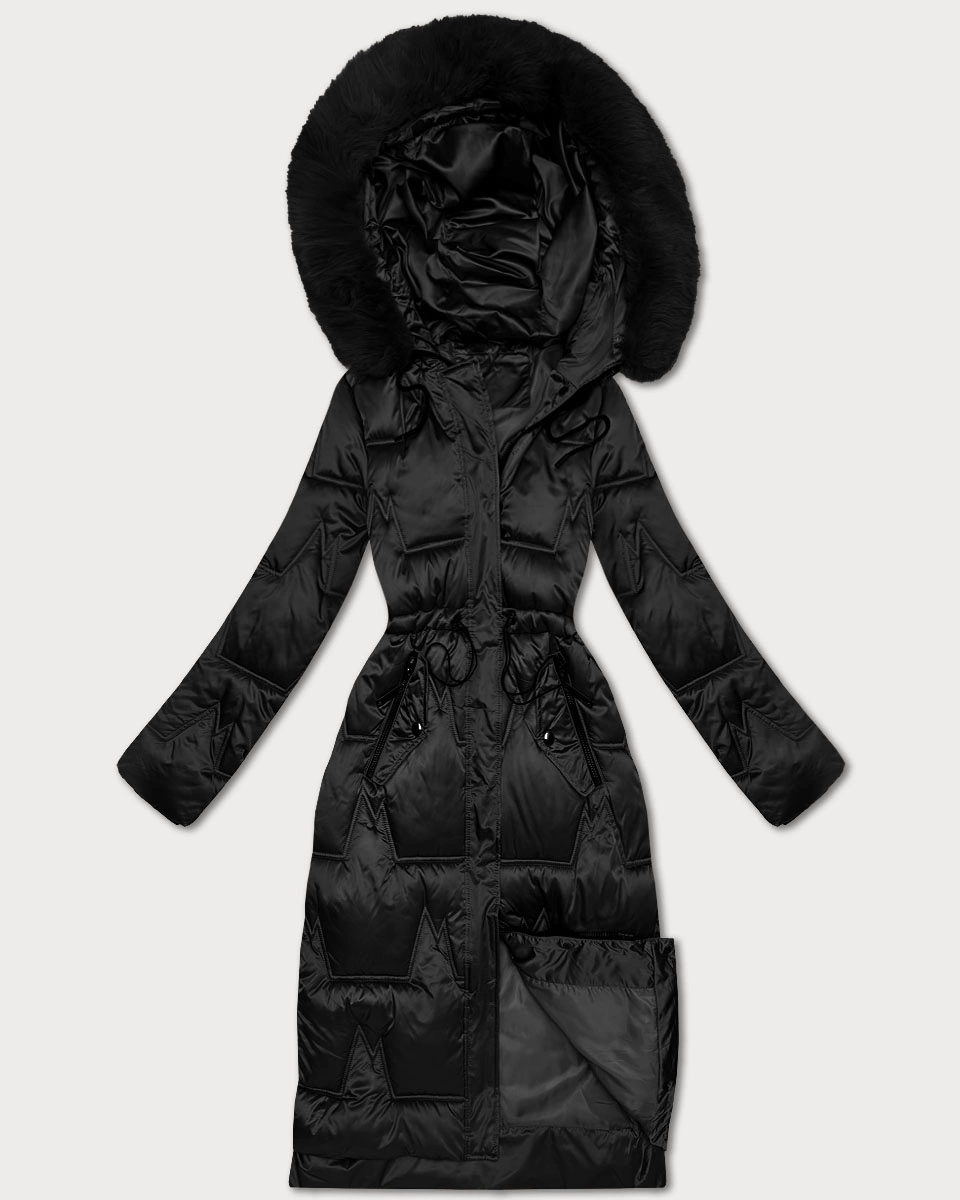 Zimowa kurtka damska ze ściągaczem w talii S'West czarna (B8522-1)