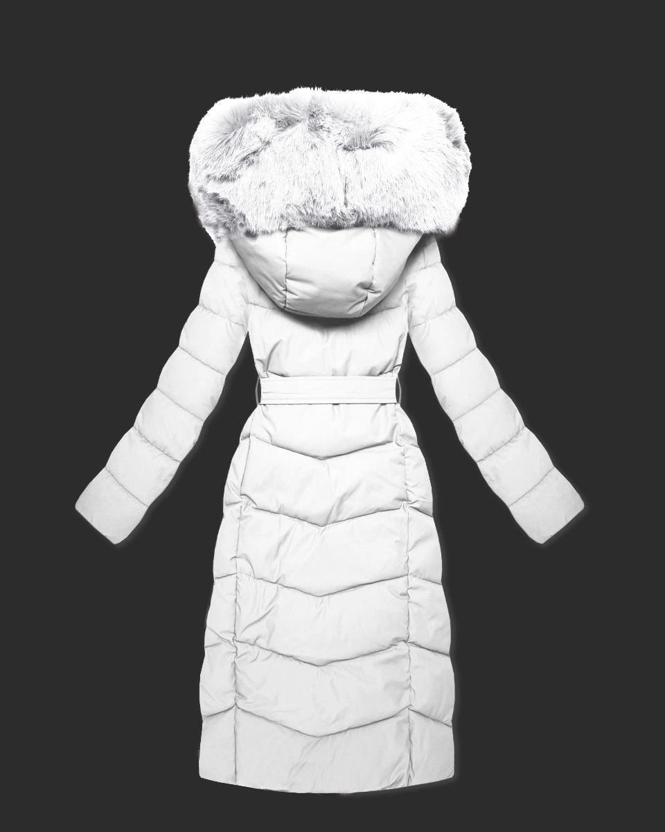 - Odpinany futrzany panel wokół kaptura i wzdłuż zamka