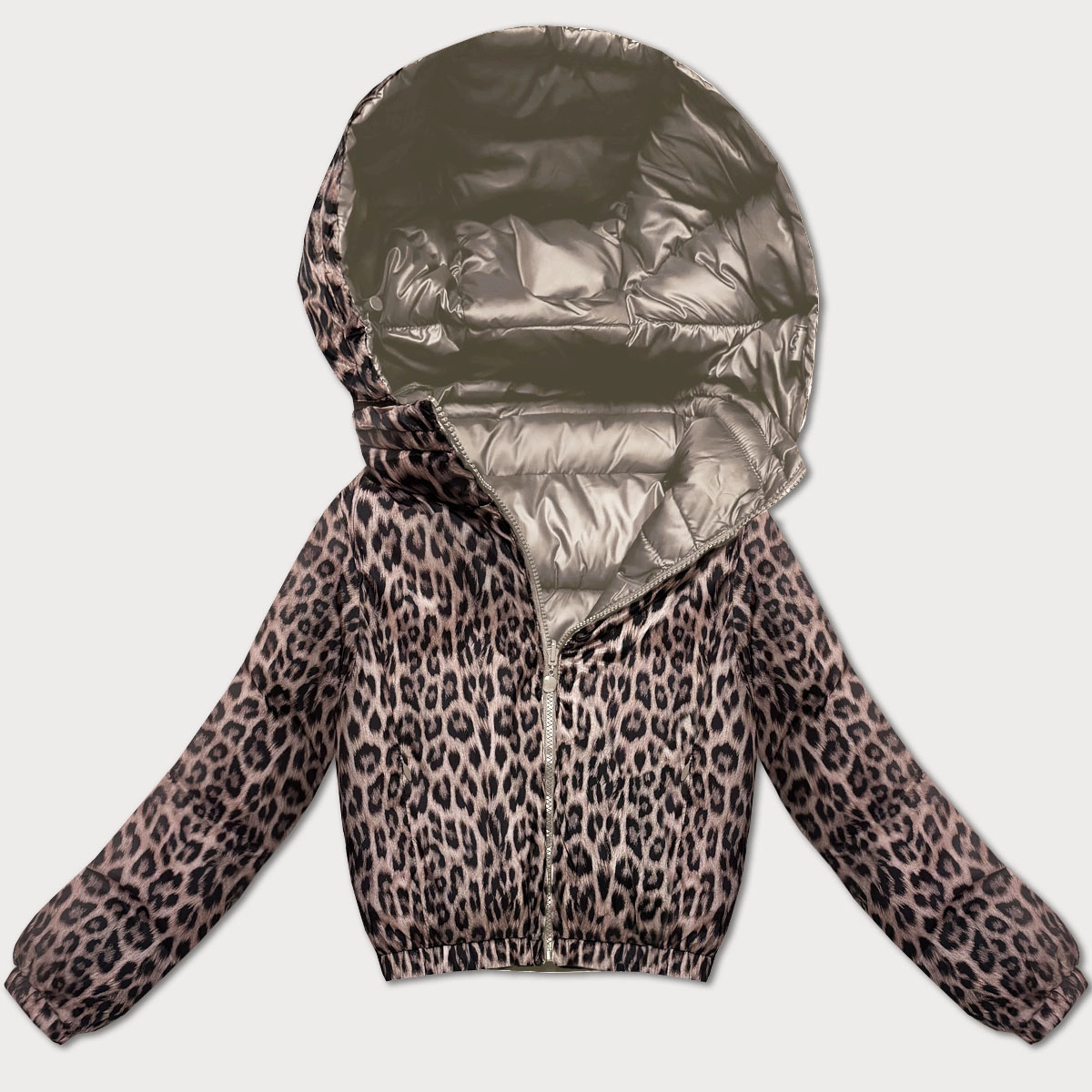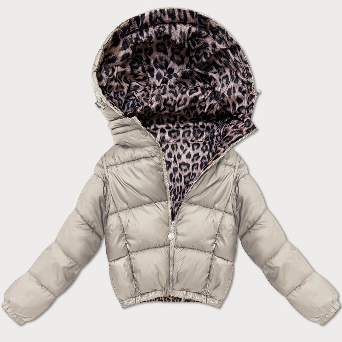 Dwustronna krótka kurtka damska Minority beżowa panterka (M6-6001-62)