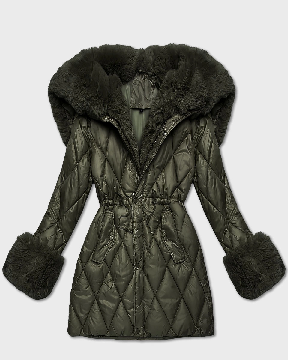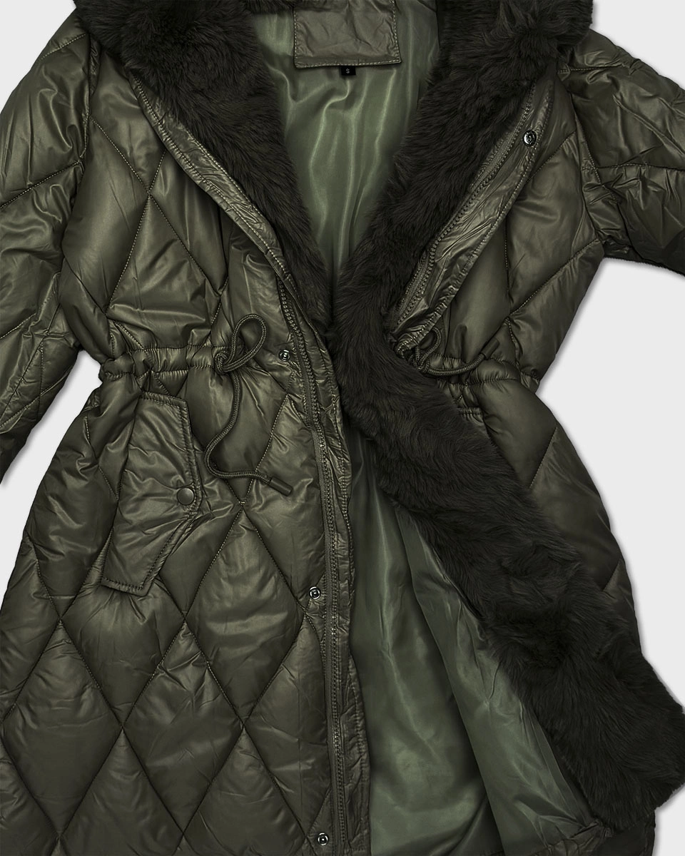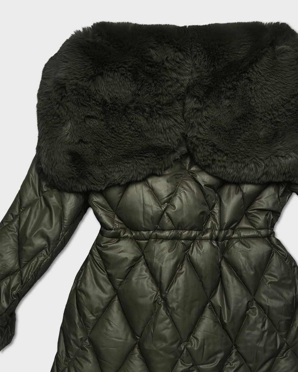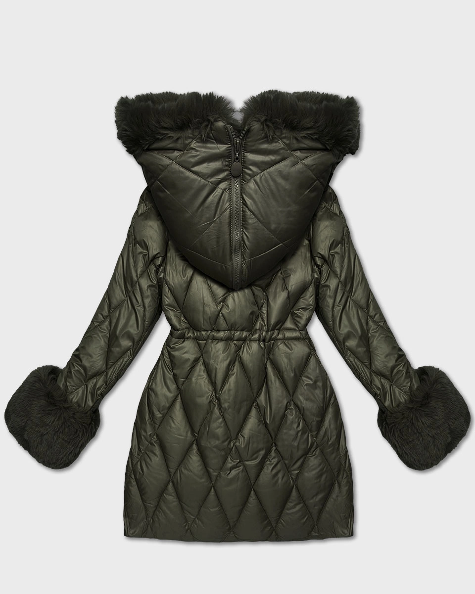Kurtka z futrzanym kapturem tworzącym kołnierz khaki (T3-2635#-22)