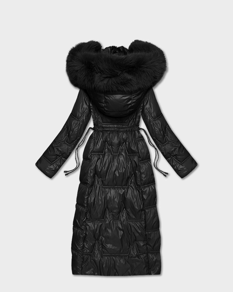 Długa pikowana damska kurtka zimowa czarna (T2-2221#-1)