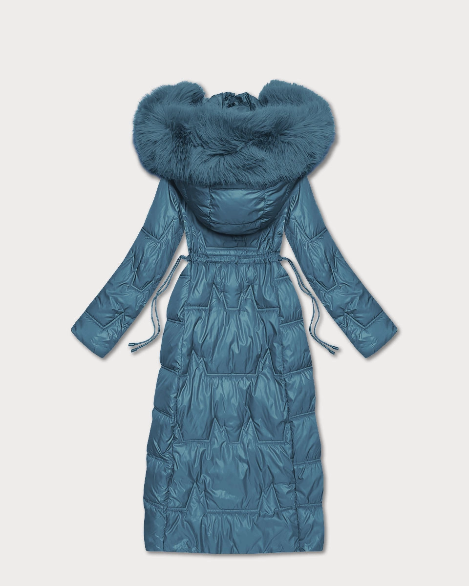Długa pikowana damska kurtka zimowa niebieska (T2-2221#-30)
