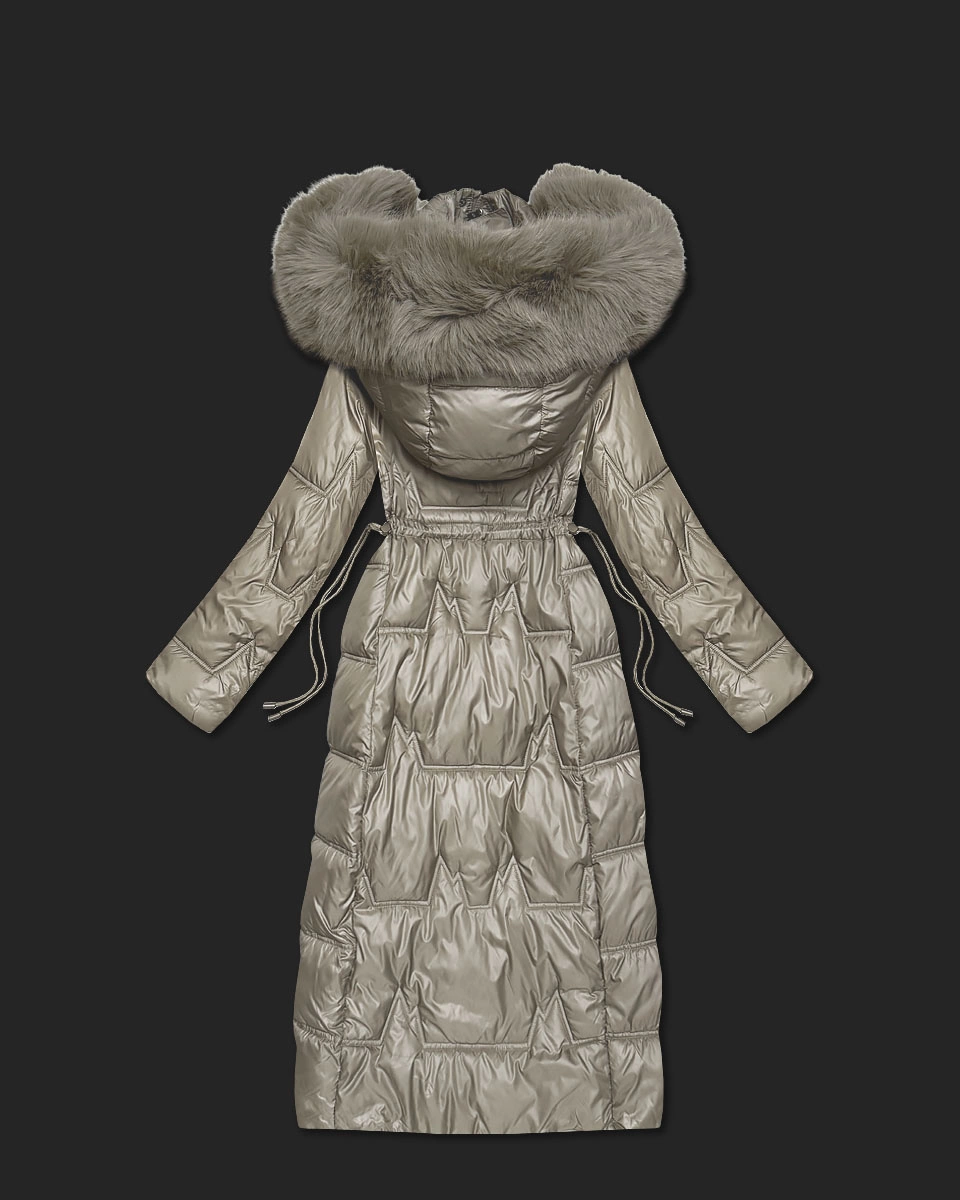 Długa pikowana damska kurtka zimowa beżowa (T2-2221#-62)