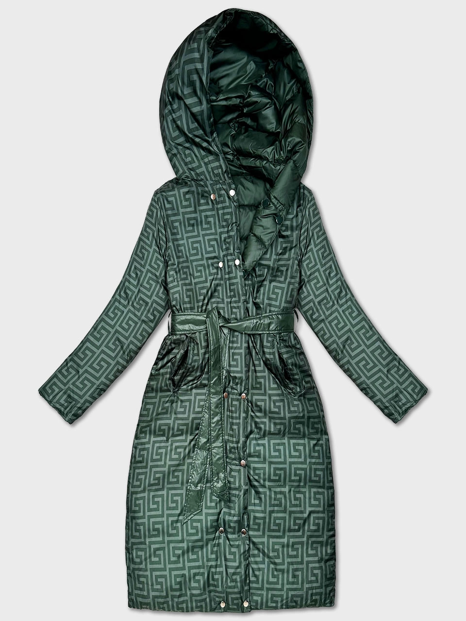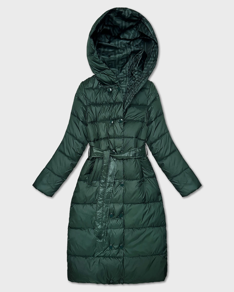 Dwustronna długa kurtka z kapturem zielona (P22-6638-33+33)