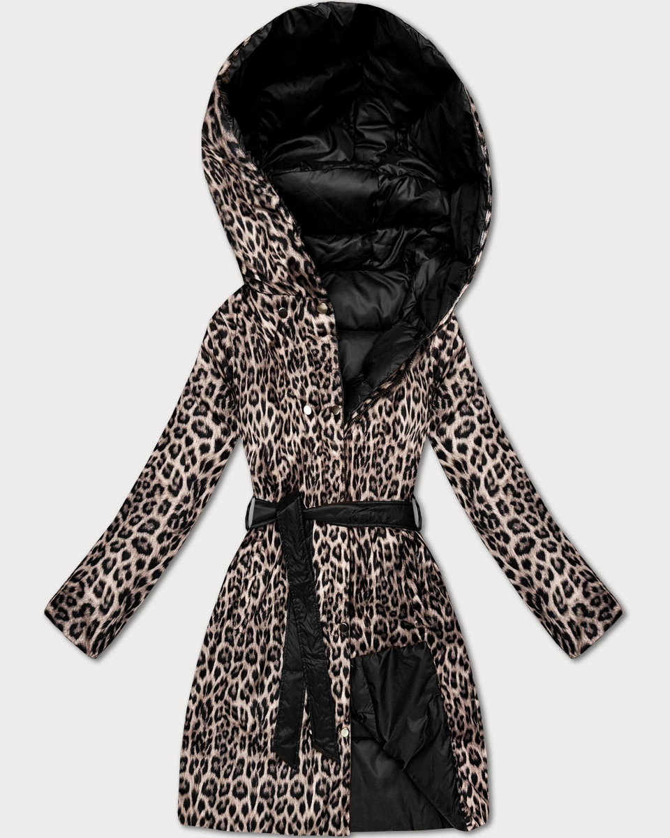 Dwustronna kurtka zimowa plus size czarna/panterka (M6-6008-1)
