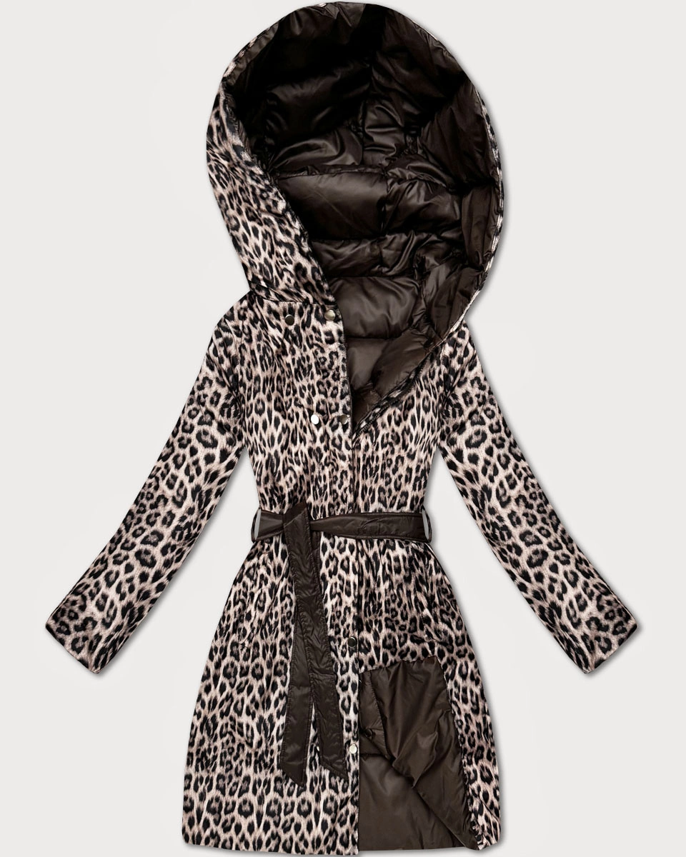 Dwustronna kurtka zimowa plus size czekoladowa/panterka (M6-6008-103)