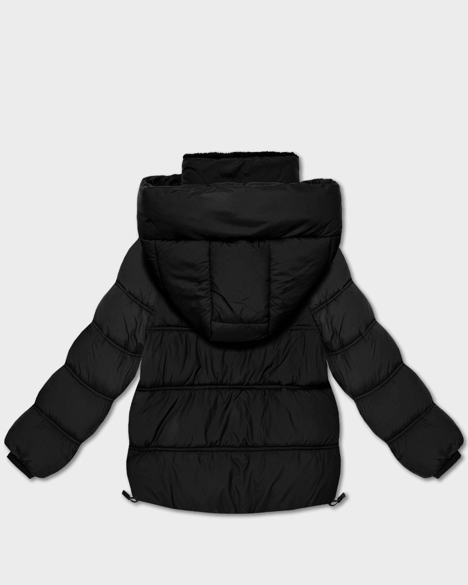 Oversizowa kurtka puchowa z kapturem czarna (KK60713)