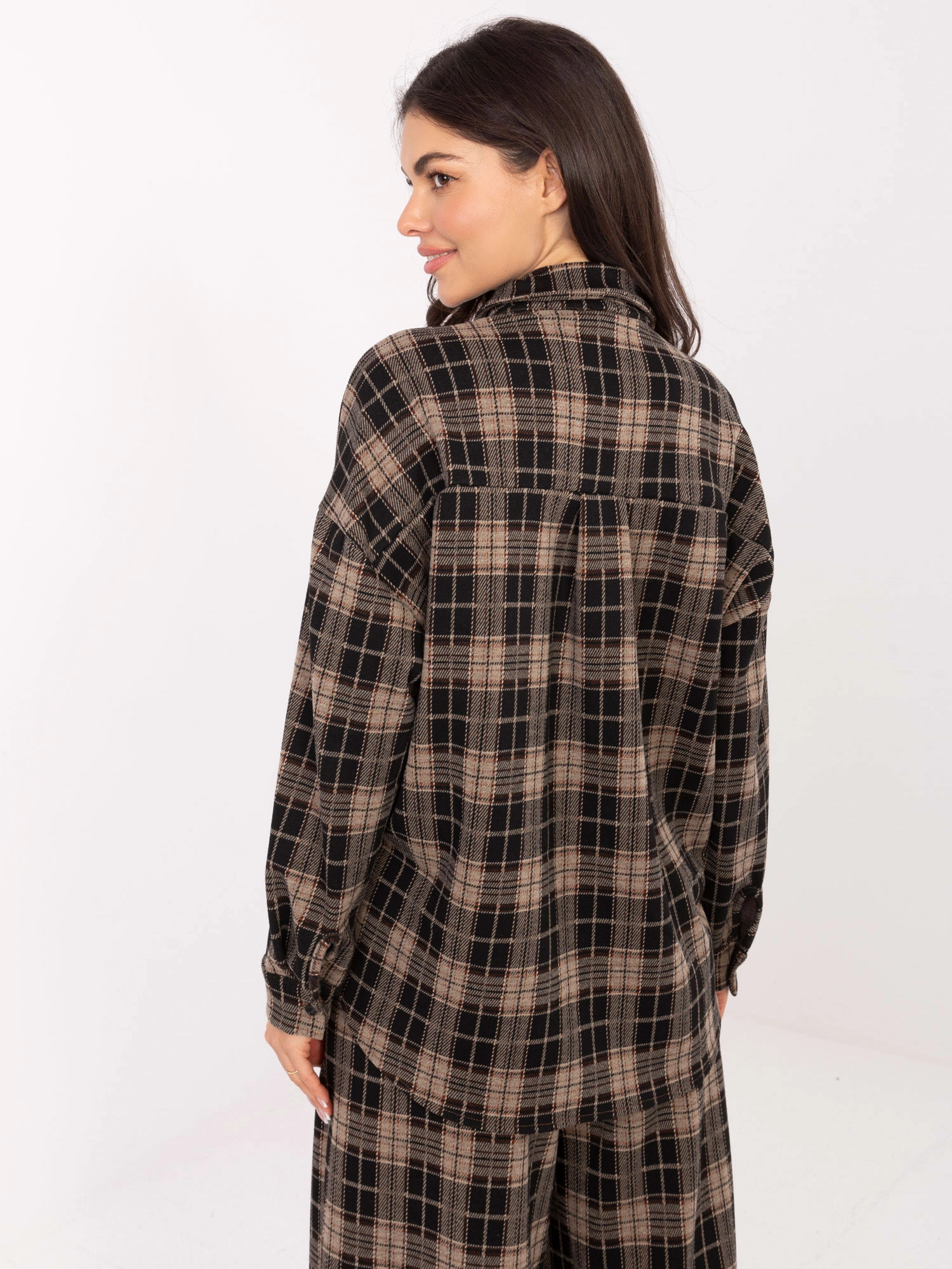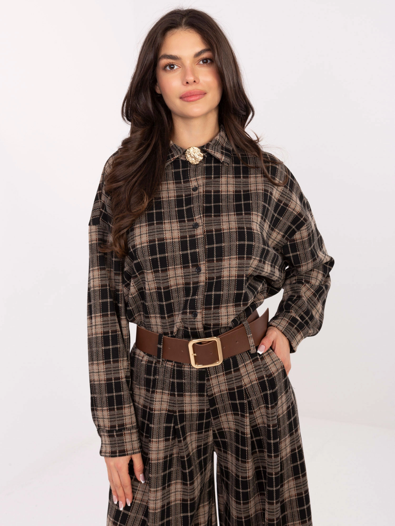 Flanelowa koszula damska w kratę ciemny beżowy (21638)