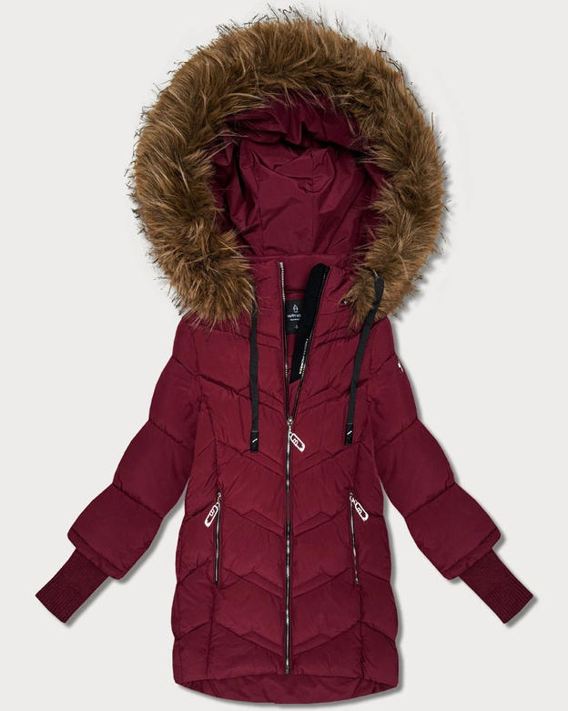 Zimowa kurtka damska z dzianinowymi ściągaczami Goodlookin bordowa (KK60616)