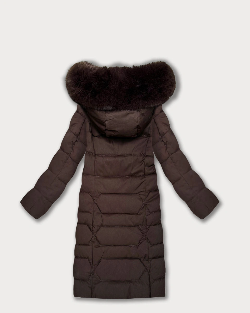 Długa kurtka damska z kapturem brązowa (7665#)