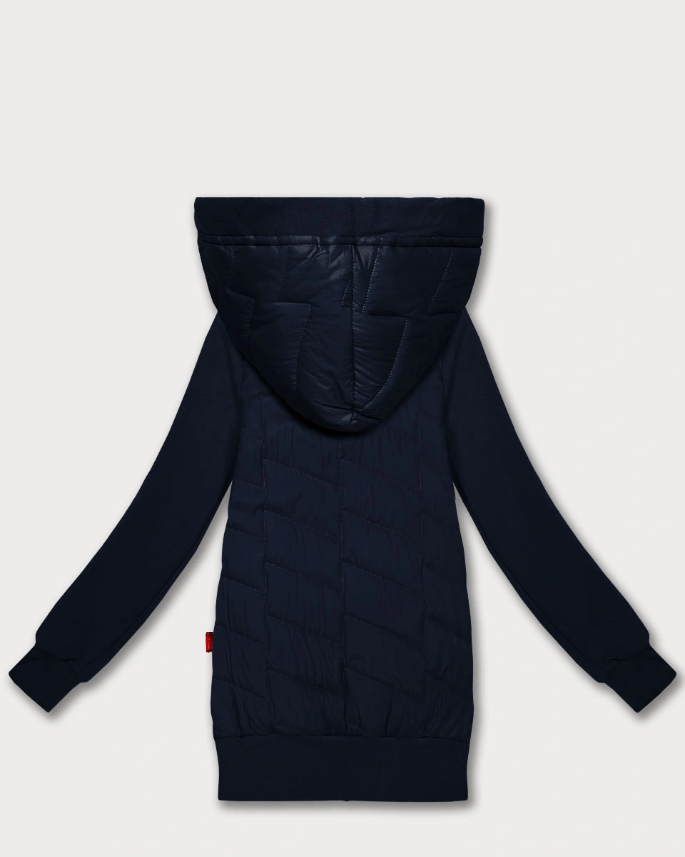 Damska bluza z kapturem z łączonych materiałów Goodlookin granatowa (AMG-175)