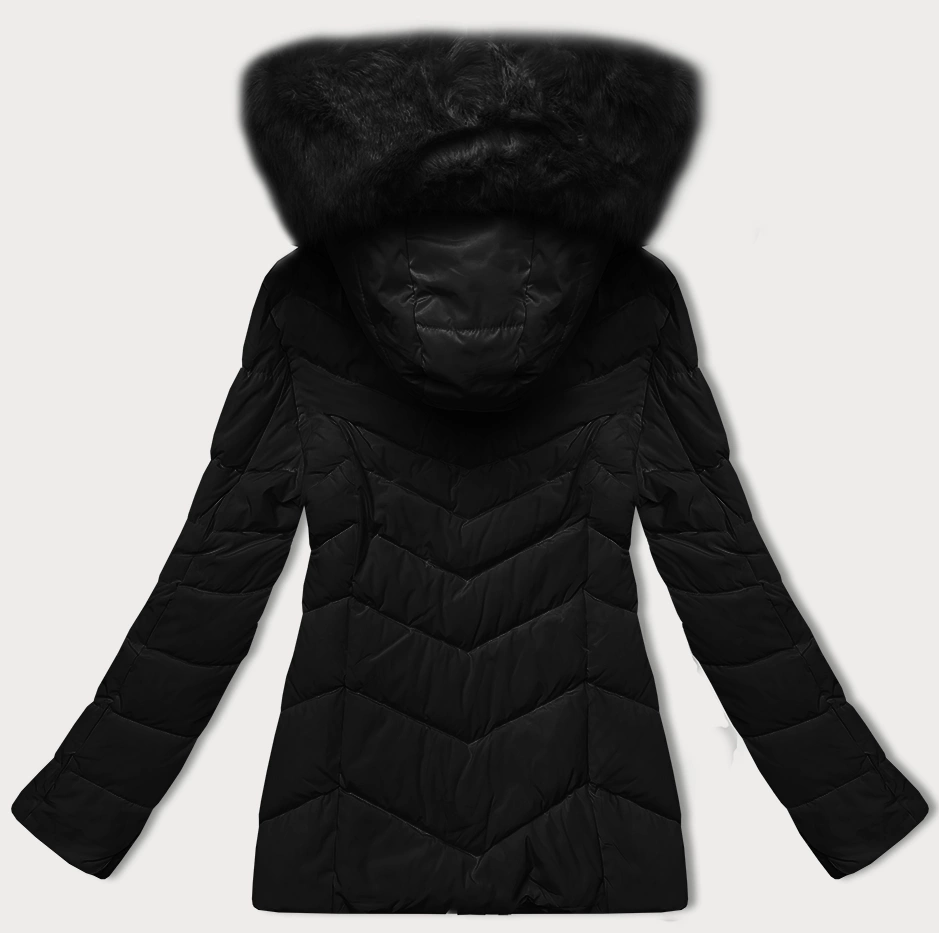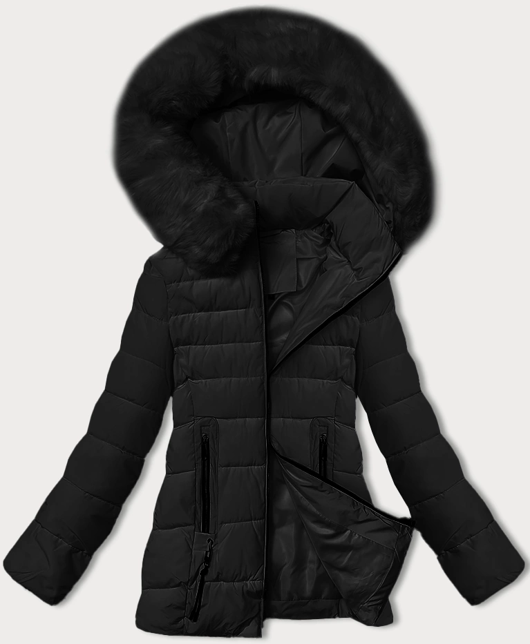 Pikowana kurtka przejściowa z futerkiem przy kapturze S'west czarna (B8301-1)