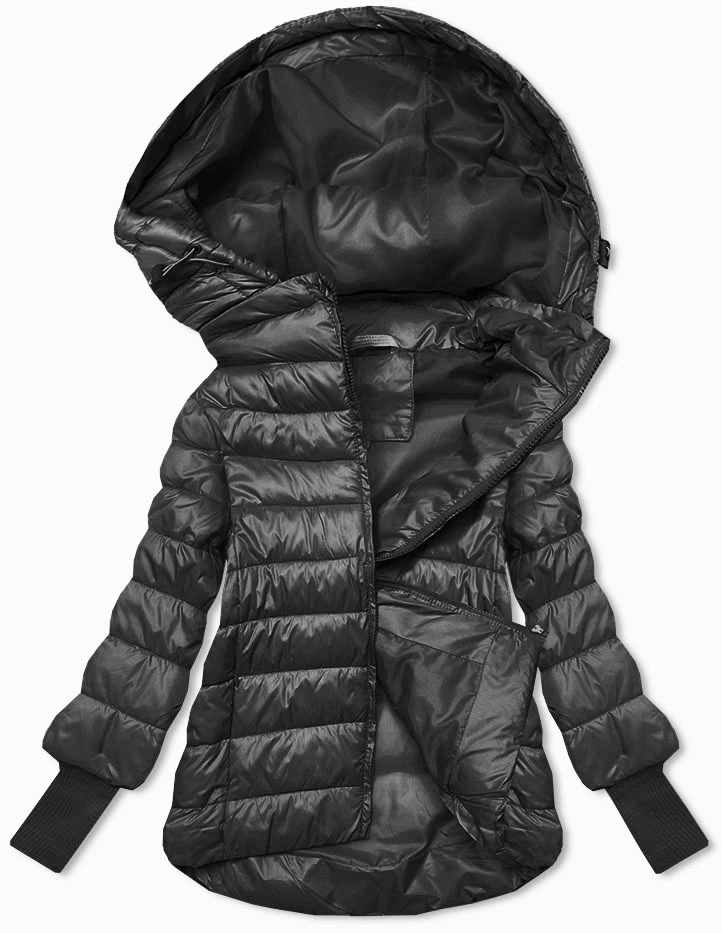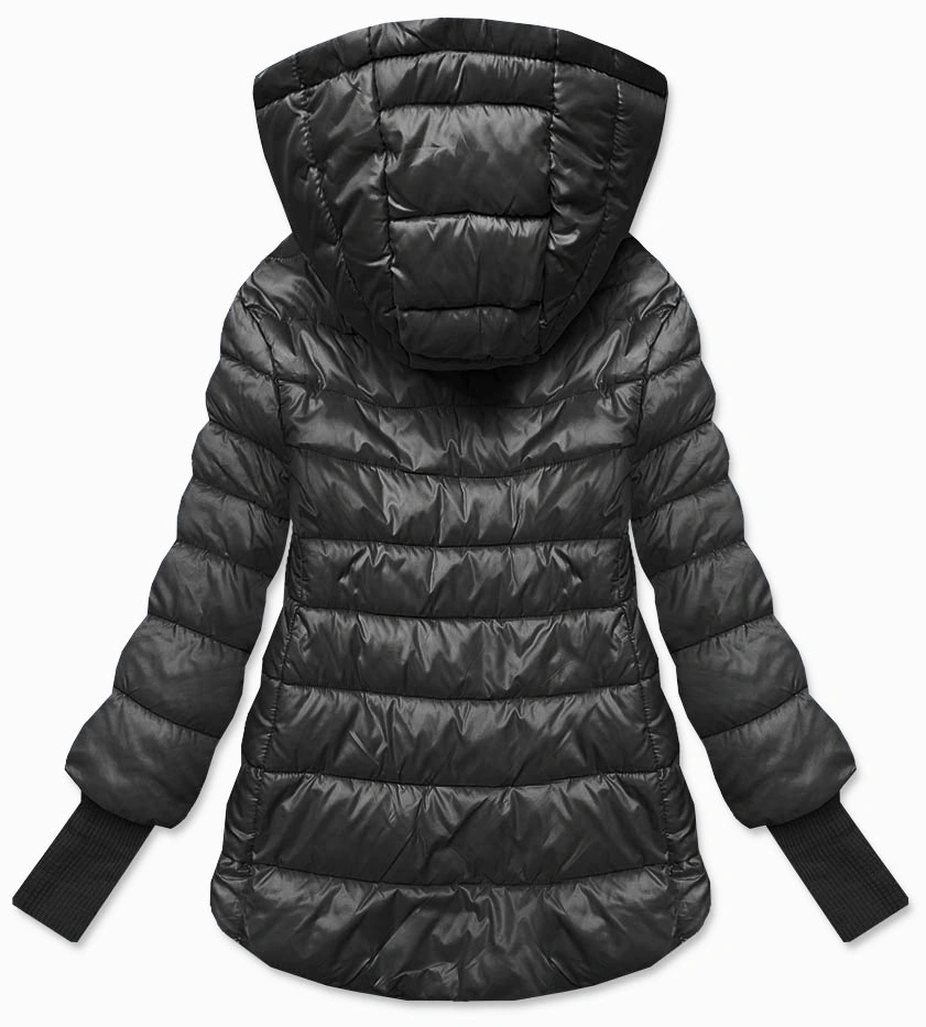 Krótka kurtka damska z dzianinowymi ściągaczami grafitowa (P22/P3-6636/P3-6023-27)