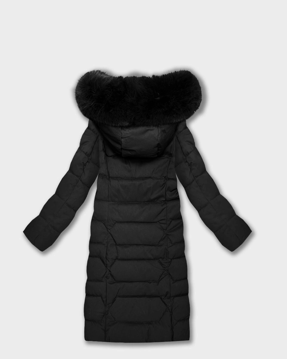 Długa kurtka damska z kapturem czarna (7665#-F06)