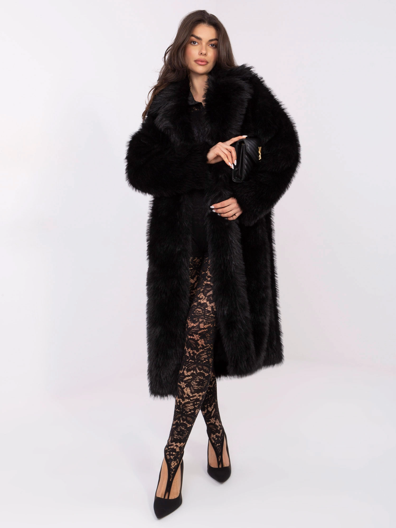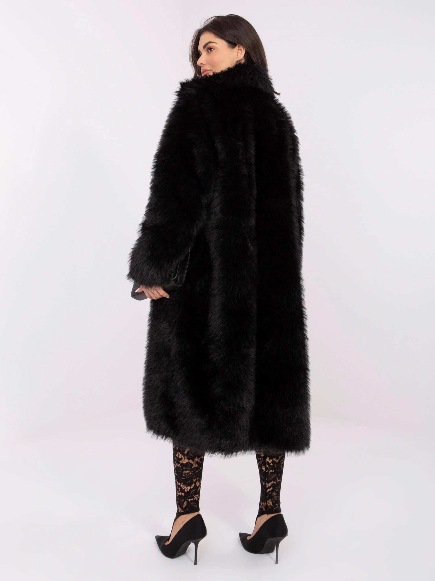 Długi płaszcz damski ze sztucznego futra Goodlookin czarny (G230132)