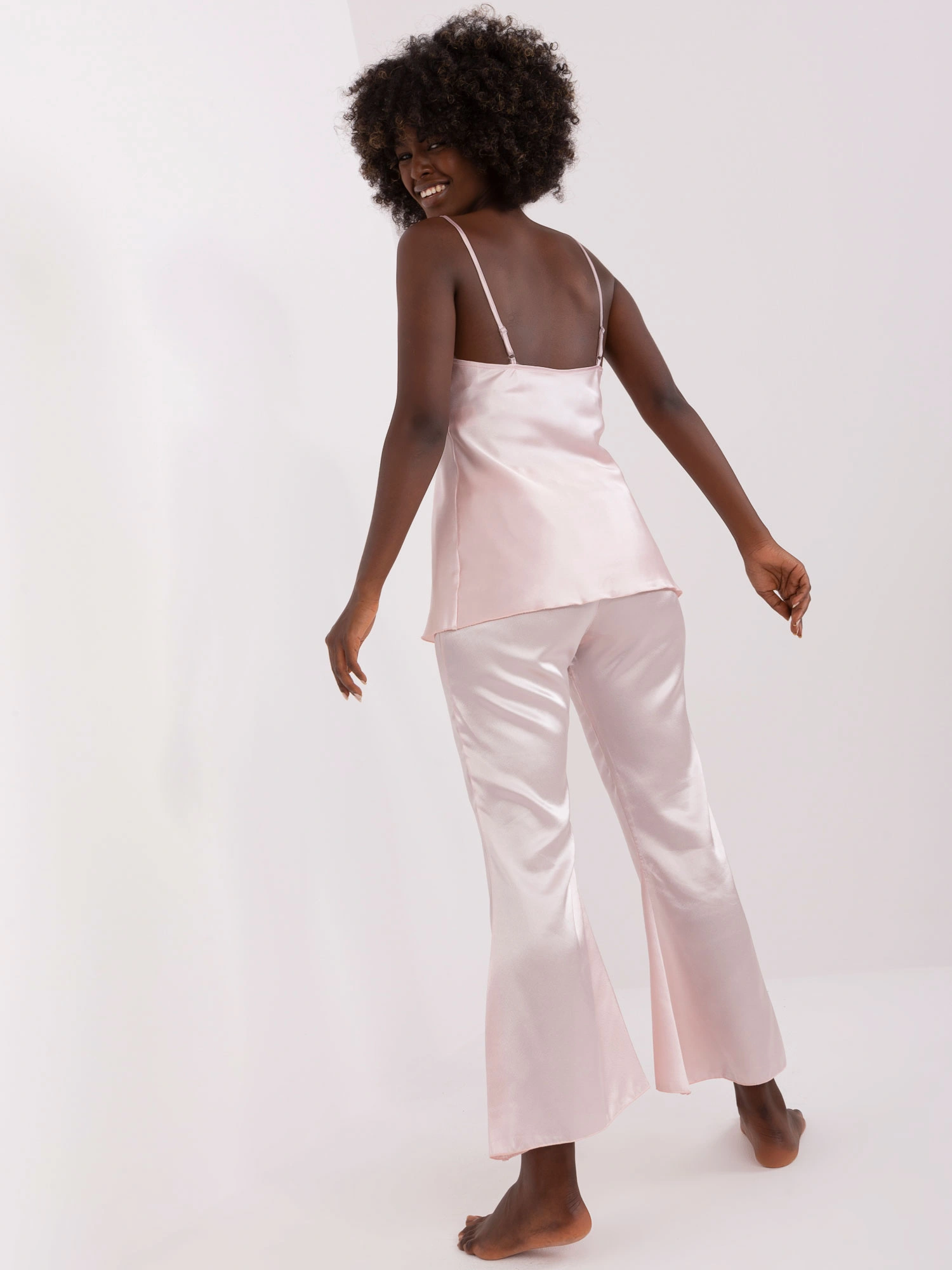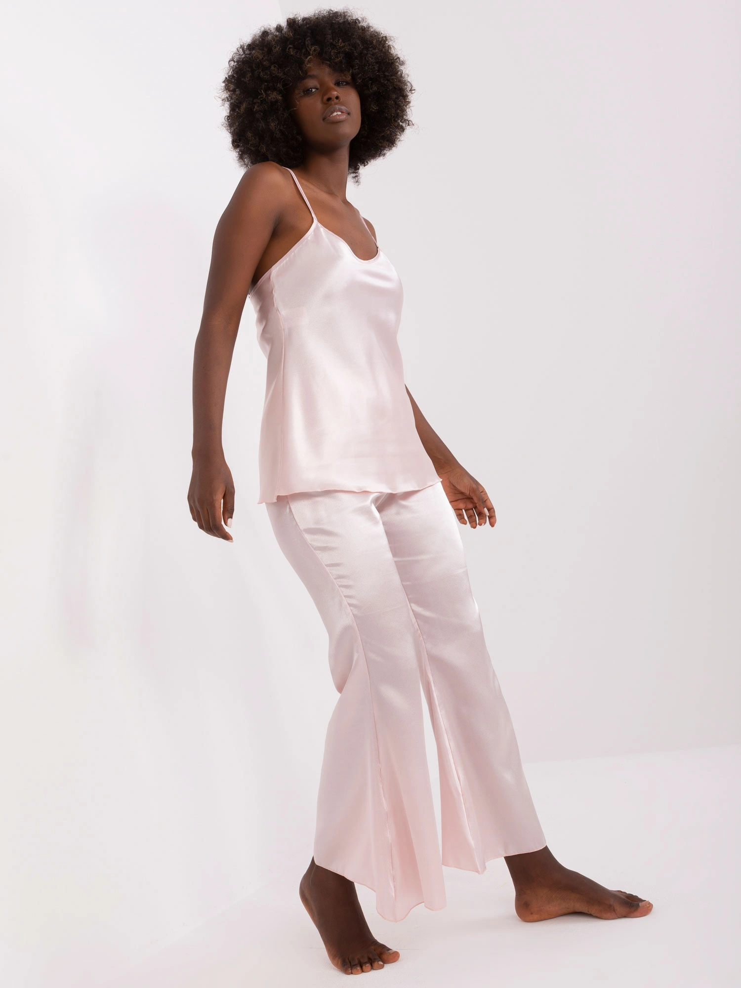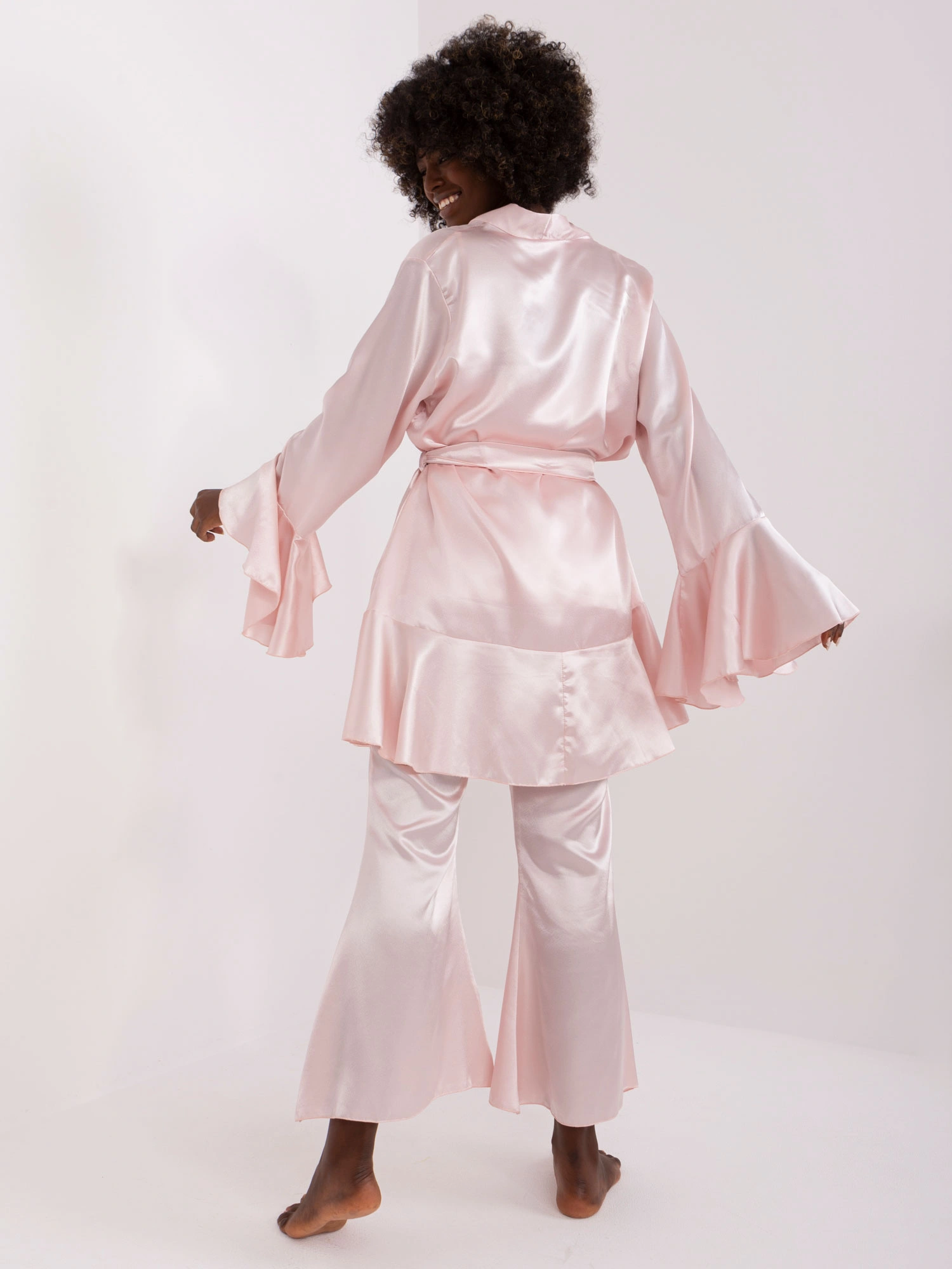 Trzyczęściowa satynowa piżama ze spodniami Goodlookin jasny róż (1079)