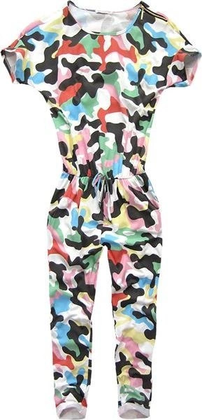 *Obłędny długi kombinezon w kolorowe moro!* Świetnie układa się na osobie. Wygodny i uniwersalny. *Góra kombinezonu o kroju oversize, dół o fasonie chinos*. Must have tego sezonu! Kombinezon jest na krótki rękaw. *Zamki na ramionach*. Posiada trok ściągający w pasie i 2 kieszenie. Podwijane nogawki. *Idealny do tworzenia unikalnych stylizacji!*