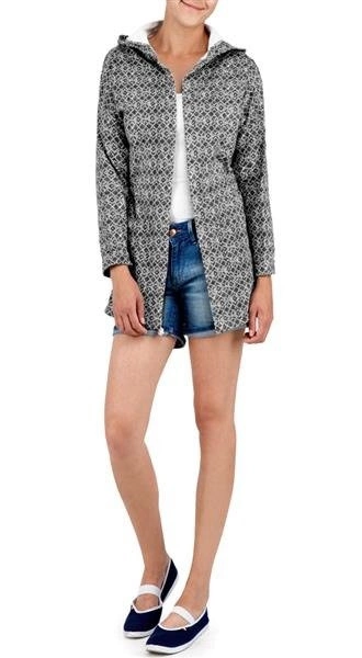 NARZUTKA Z KAPTUREM W DROBNE ROMBY CZARNA (8023)