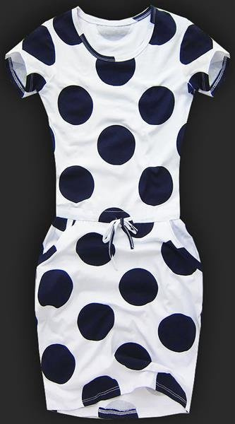 BAWEŁNIANA SUKIENKA W GROCHY BIAŁO-GRANATOWA (9526)