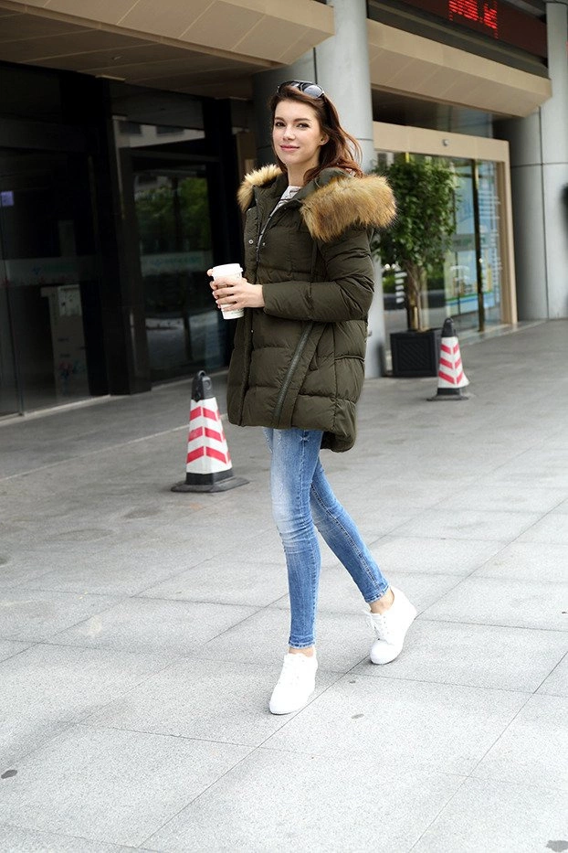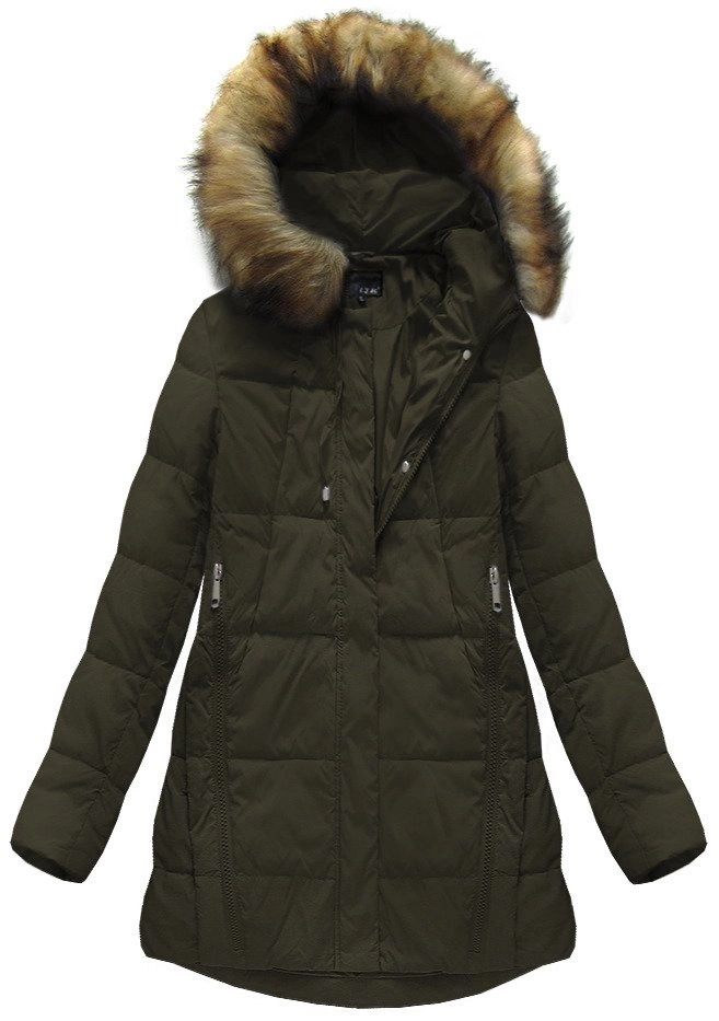 KURTKA DAMSKA ZIMOWA Z PUCHEM NATURALNYM KHAKI (8061)
