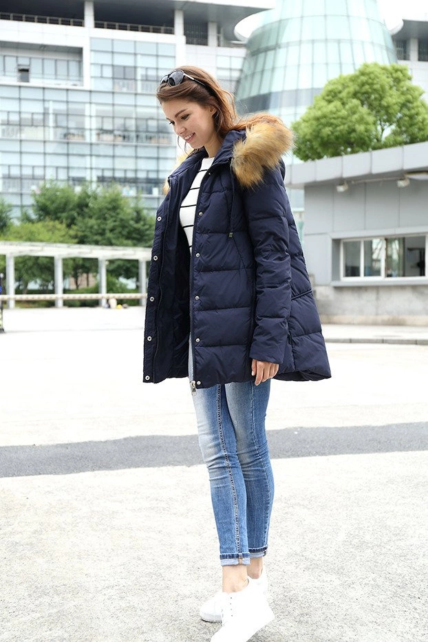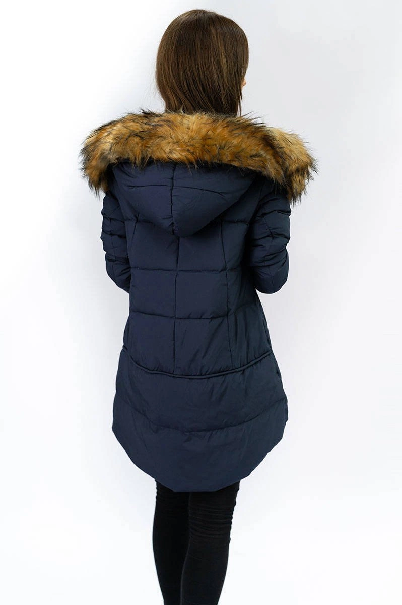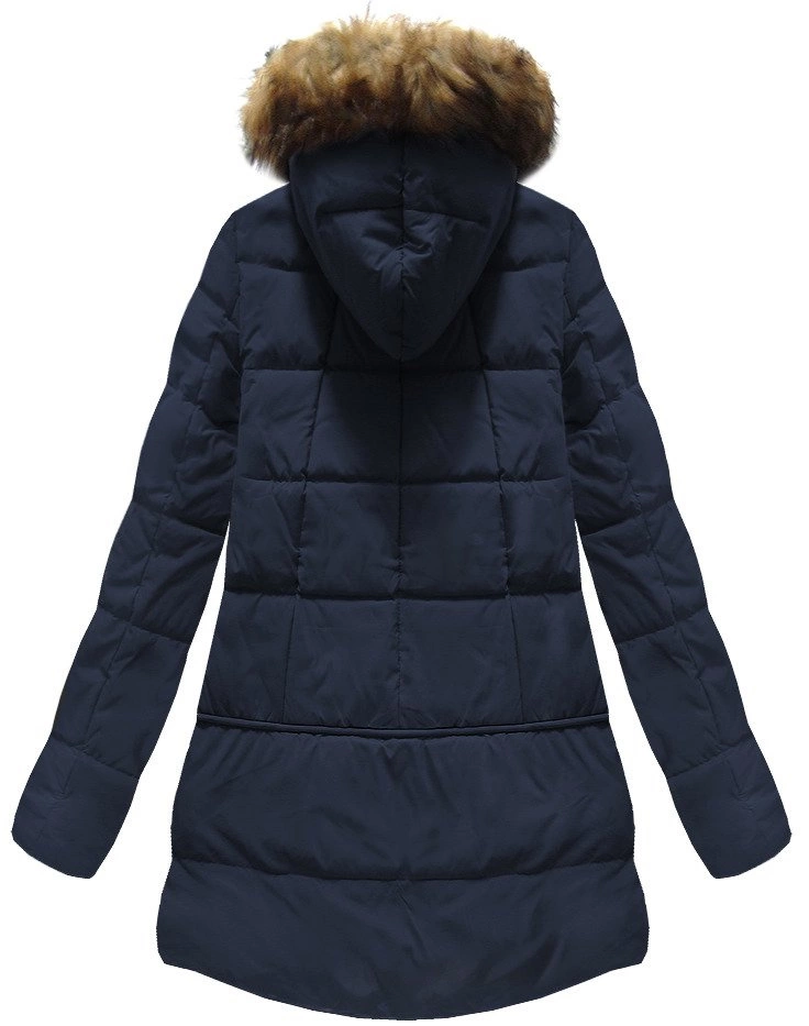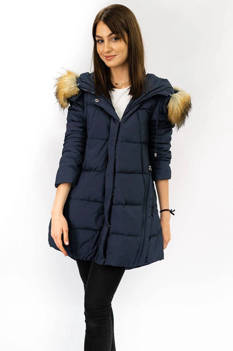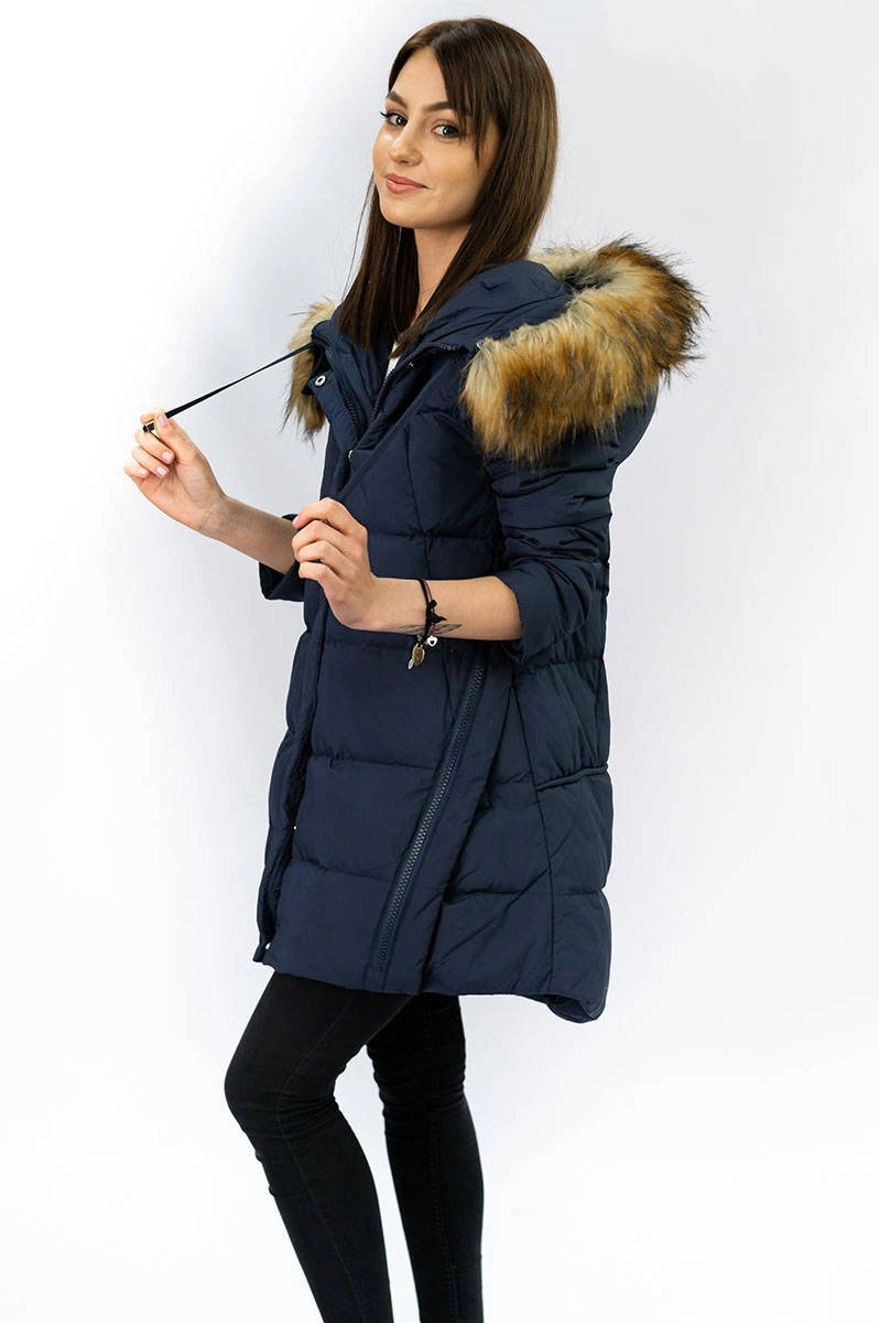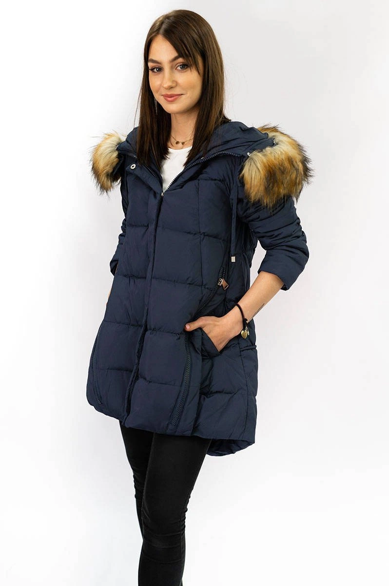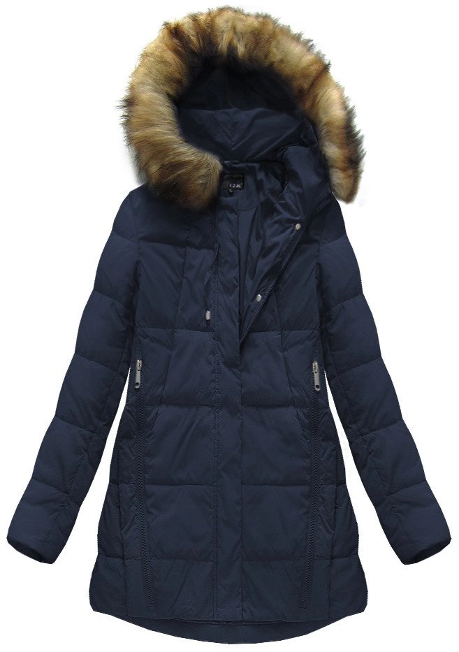 KURTKA DAMSKA ZIMOWA Z PUCHEM NATURALNYM GRANATOWA (8061)