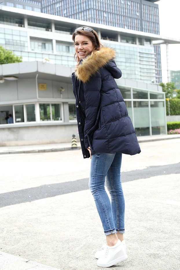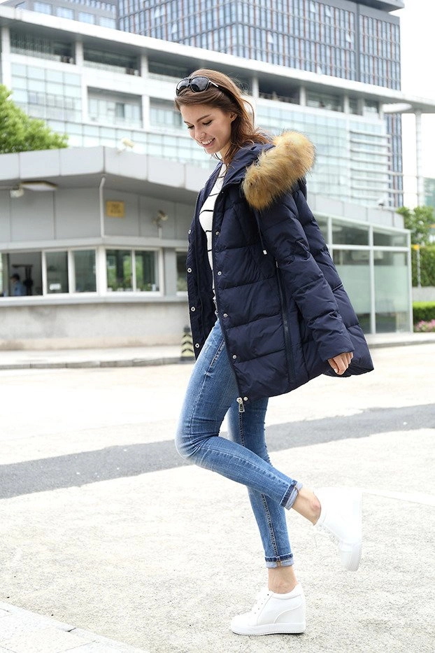 Opinie o KURTKA DAMSKA ZIMOWA Z PUCHEM NATURALNYM GRANATOWA (8061)