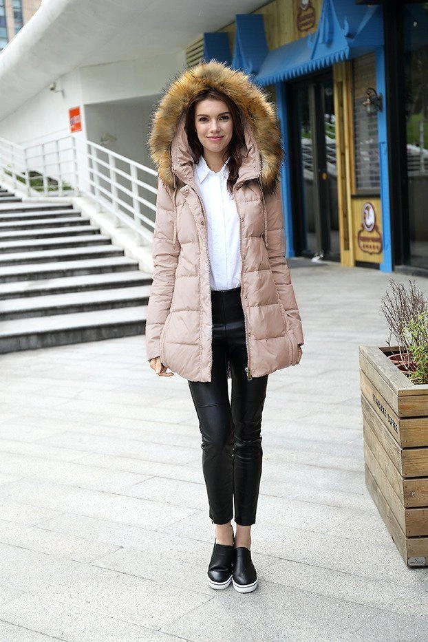 KURTKA Z PUCHEM NATURALNYM ŁOSOSIOWA (8061)