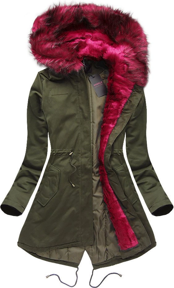 BAWEŁNIANA PARKA ZIMOWA KHAKI-BORDOWA (L111)