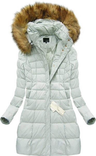 KURTKA Z PUCHEM NATURALNYM SZAROMIĘTOWA (8064)