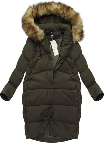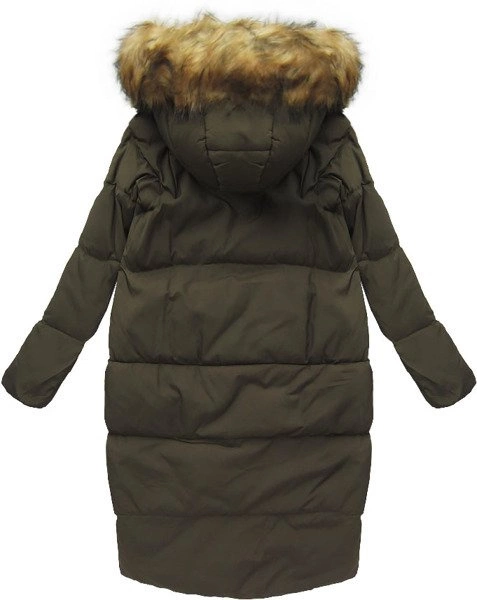 DŁUGA KURTKA Z PUCHEM NATURALNYM KHAKI (8073)