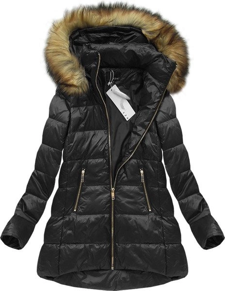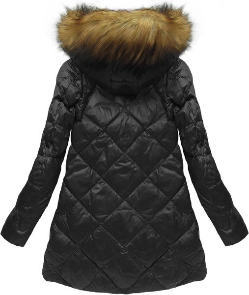 PIKOWANA KURTKA Z PUCHEM NATURALNYM CZARNA (8070)
