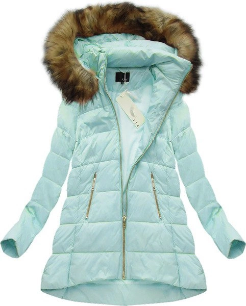 PIKOWANA KURTKA Z PUCHEM NATURALNYM BŁĘKITNA (8070)
