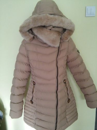 Super kurtka, lekka ale cieplutka. Bardzo ładnie odszyta. Na komputerze trochę inny odcień ale generalnie beż z brązowymi zamkami. Jest super wykończona przy szyi. Można ładnie rozłożyć kołnierz tak żeby było widać szalik ale można również zapiąć wysoko pod szyję i nosić bez szalika. Futerko fantastycznie otula szyję i bardzo ładnie wygląda. Wykończenie kołnierza milutkim misiem i lekkie dopasowanie w talii dodaje elegancji. Kurtka i do pracy i do wyjścia na wieczór. Świetny zakup, rozmiar idealny, bezproblemowa dostawa.
