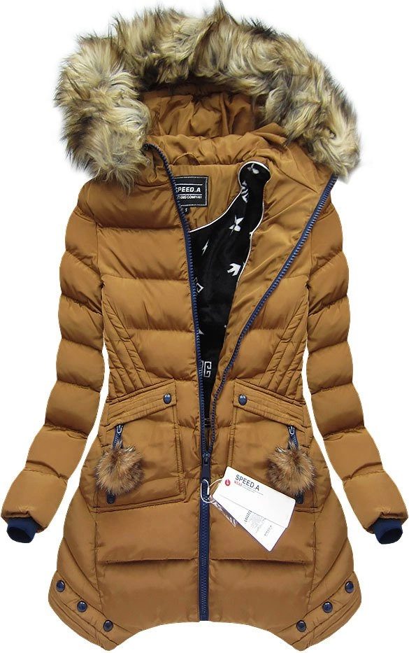 PIKOWANA KURTKA Z KAPTUREM KARMELOWA (W810)
