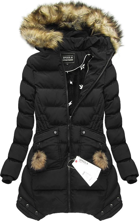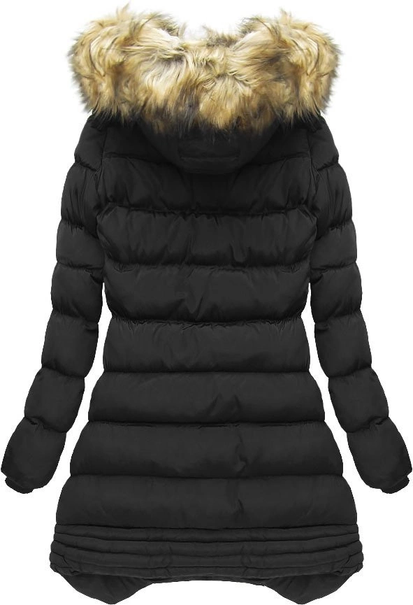 PIKOWANA KURTKA Z KAPTUREM CZARNA (W810)