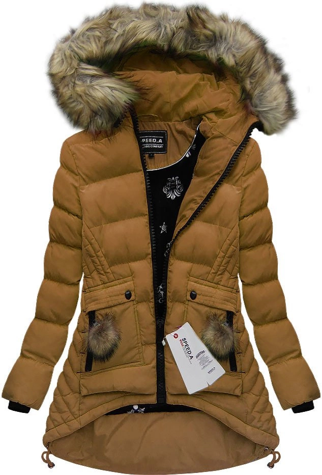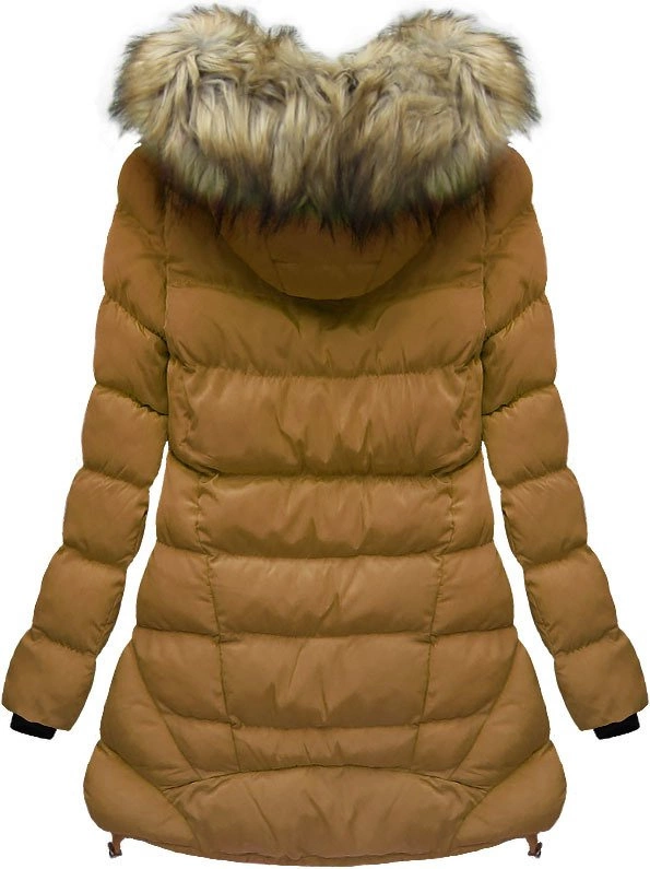 PIKOWANA KURTKA Z KAPTUREM KARMELOWA (W811)
