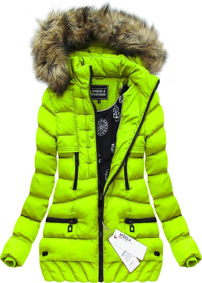 PIKOWANA KURTKA Z KAPTUREM LIMONKOWA (W819BIG)