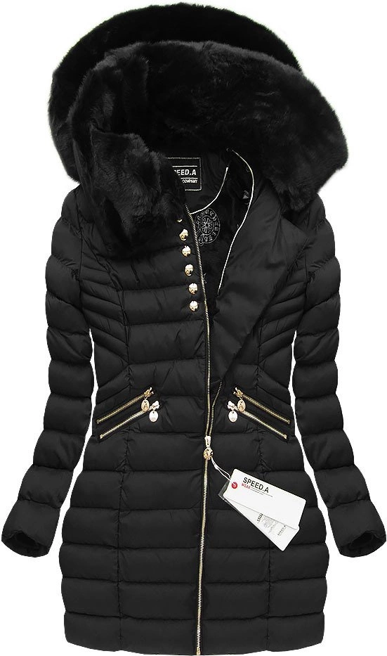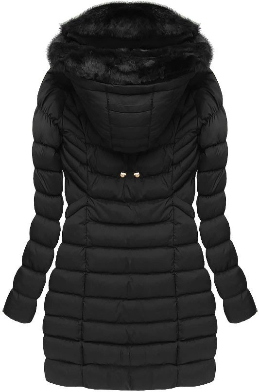 PIKOWANA KURTKA Z KAPTUREM CZARNA (W821)