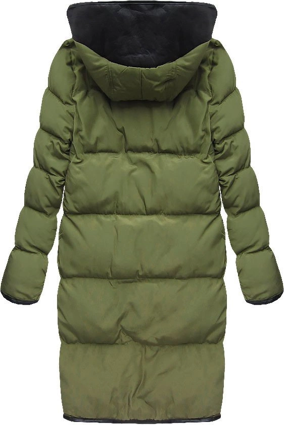 PIKOWANY PŁASZCZ ZIMOWY MIDI ZIELONY (8049)