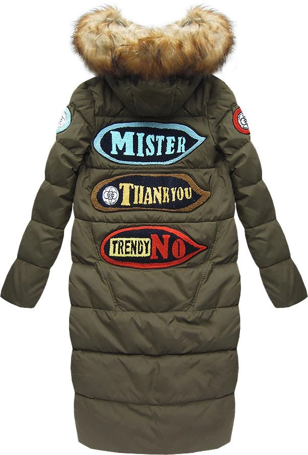 PŁASZCZ ZIMOWY Z PUCHEM NATURALNYM KHAKI (8067)