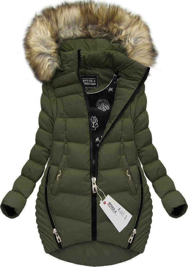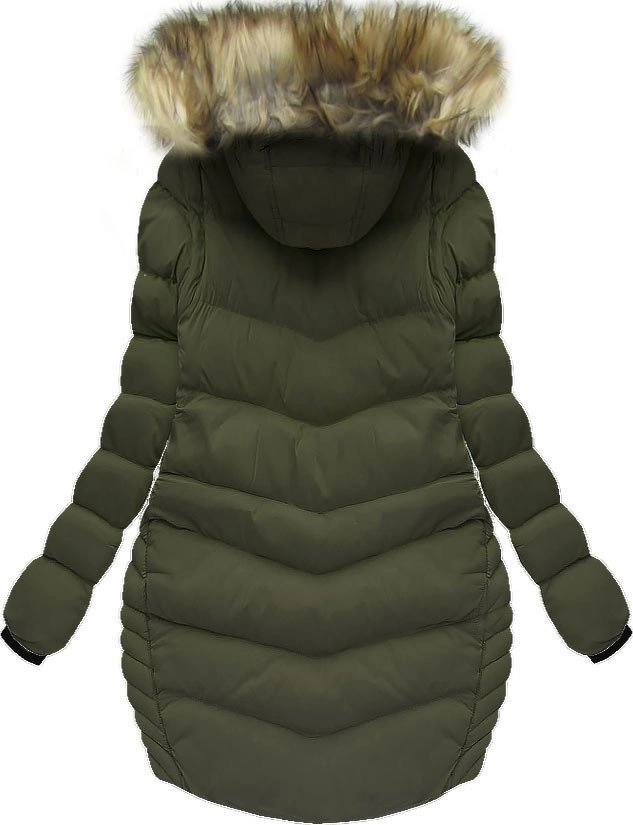 Bardzo ciepła długa kurtka zimowa z kapturem. Kurtka ocieplona puchem syntetycznym doskonałej jakości. Wnętrze dodatkowo ocieplone bardzo miłym w dotyku misiem, w finezyjny wzór. Kurtka posiada odpinany kaptur (na zamek) z futerkiem. Futerko przy kapturze jest odpinane (na guziczki) i układa się na panelu/zakładce wokół kaptura. W kapturze znajdują się także troki ściągające z stoperami. Ma także stójkę. Kurtka zapinana jest na zamek. Posiada 2 kieszenie zapinane na zamek. Kieszenie ozdobione są metalową aplikacją. Na bokach kurtki znajdują się ozdobne zamki. Dół kurtki jest asymetryczny - przód krótszy, tył dłuższy. Kurtka jest pikowana. Schowane ściągacze na końcach rękawów chronią przed napływającym zimnem. Kurtka ma odpinane rękawy tworząc bezrękawnik. Wykonana z świetnej jakości materiału. Bardzo wygodna i praktyczna. Kurtka idealna do tworzenia oryginalnych stylizacji. Kurtka pięknie się prezentuje.