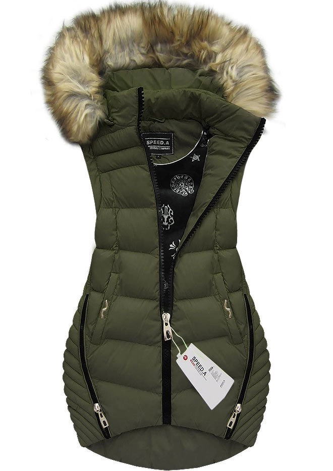 ASYMETRYCZNA KURTKA/BEZRĘKAWNIK Z KAPTUREM KHAKI (W816)