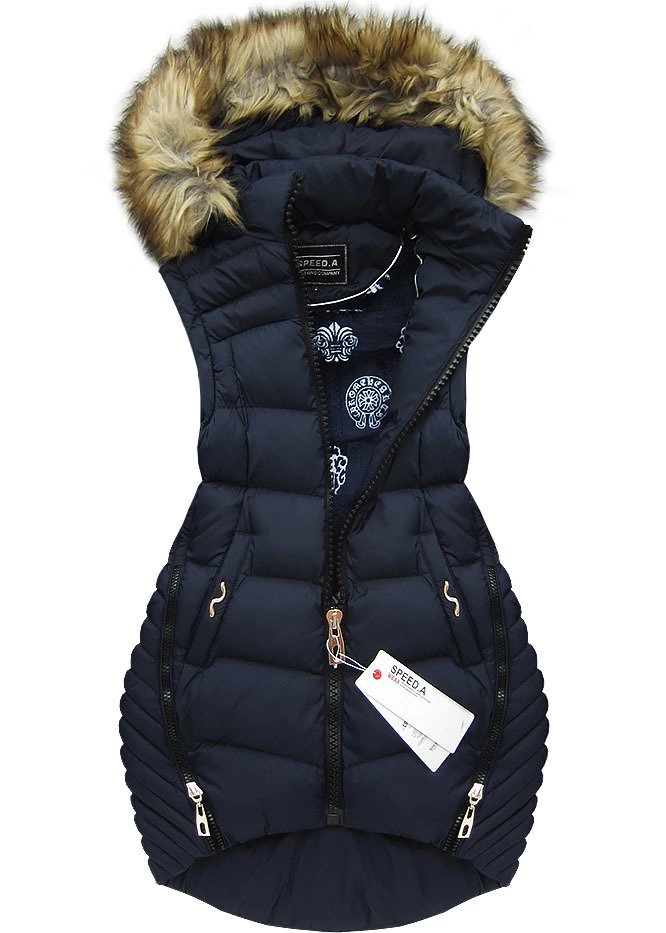 Opinie o ASYMETRYCZNA KURTKA/BEZRĘKAWNIK Z KAPTUREM GRANATOWA (W816)