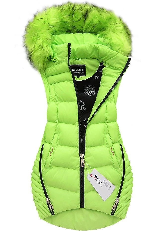 Opinie o ASYMETRYCZNA KURTKA/BEZRĘKAWNIK Z KAPTUREM LIMONKOWA (W816)