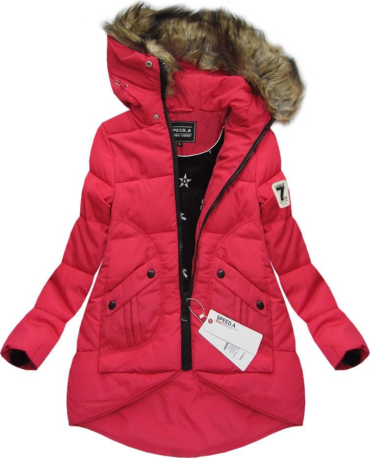 PIKOWANA KURTKA Z KAPTUREM CZERWONA (W803)