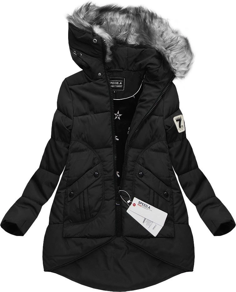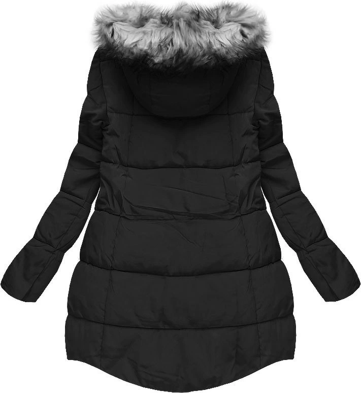 PIKOWANA KURTKA Z KAPTUREM CZARNA (W803)